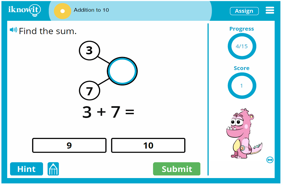 I Know It is a math practice website geared toward elementary-aged students to help them build confidence and proficiency in their basic math skills. Students enjoy the easy-to-navigate, kid-friendly format, including bright colors, large icons, whimsical animated characters, and fun emojis that provide positive reinforcement when they answer the questions correctly. It almost feels as if they are playing an engaging, yet challenging, math game.