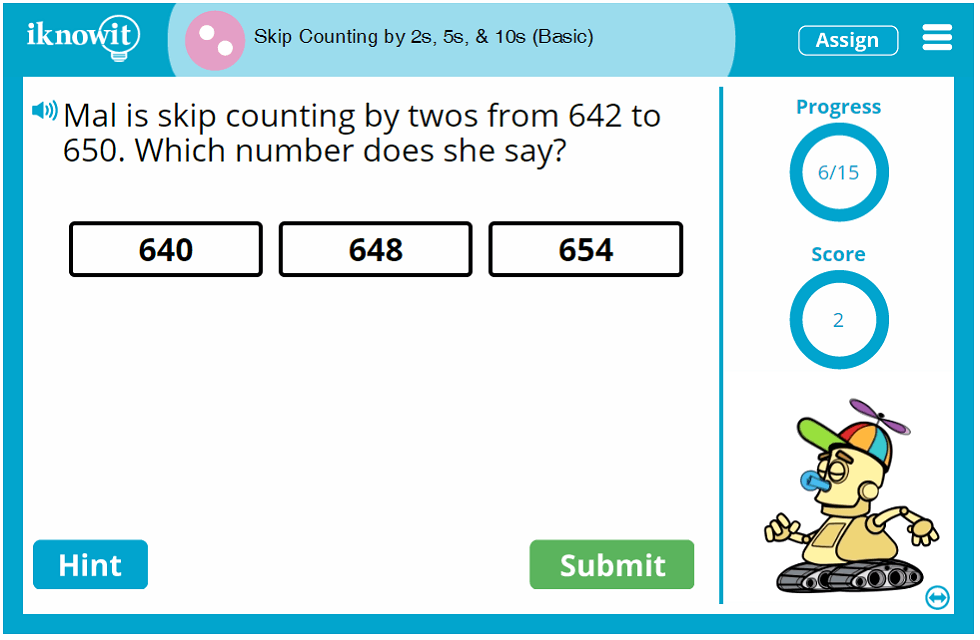 We're confident both you and your students will enjoy this skip counting math lesson when you give it a try! Sign up for a free 30-day trial and you will be be able to try this lesson at no cost! Please know that students are limited to a total of twenty-five questions per day across all the lessons on “I Know It”. If you wish to have unlimited access to iKnowIt.com, you will need to purchase a membership.