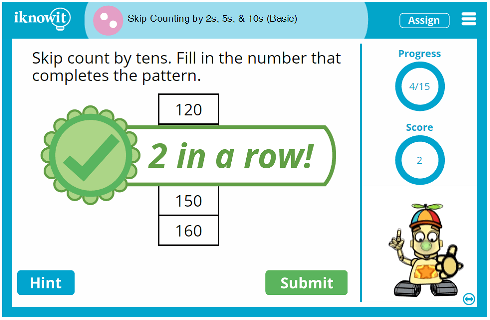 We designed I Know It as an interactive math practice program for elementary-aged students. Our website is completely designed with kids in mind! From the child-friendly display screen to the easy-to-navigate layout, to the silly animations eager to reinforce learning with a funny dance or skit, children love practicing math skills on iKnowIt.com! Educators, too, will love using “I Know It” for the quality and scope of the math skills covered in our interactive elementary math program.